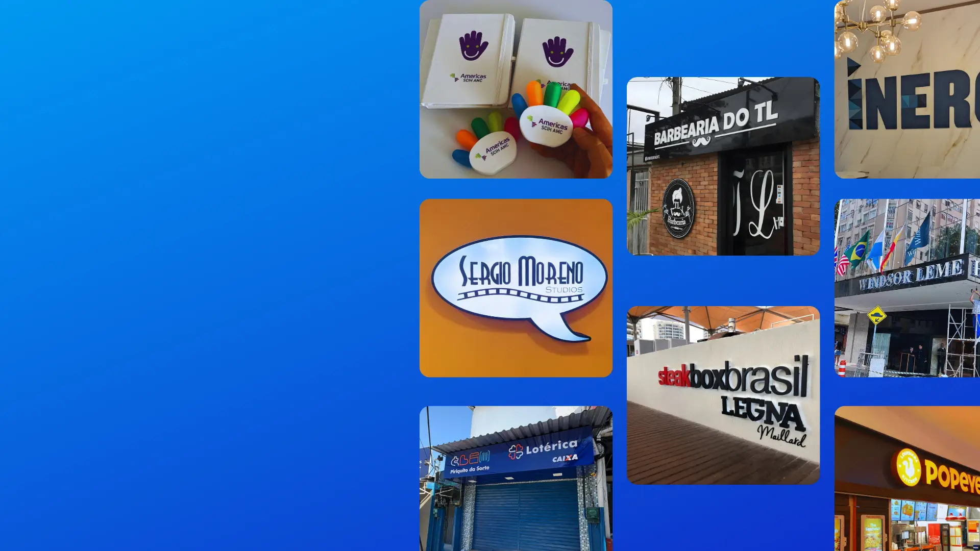 Da criação ao resultado final, entregamos comunicação visual que transforma o espaço da sua empresa. Adesivos, fachadas, letreiros, banners, sinalização e muito mais! Tudo com altíssima qualidade de impressão e acabamento impecável.